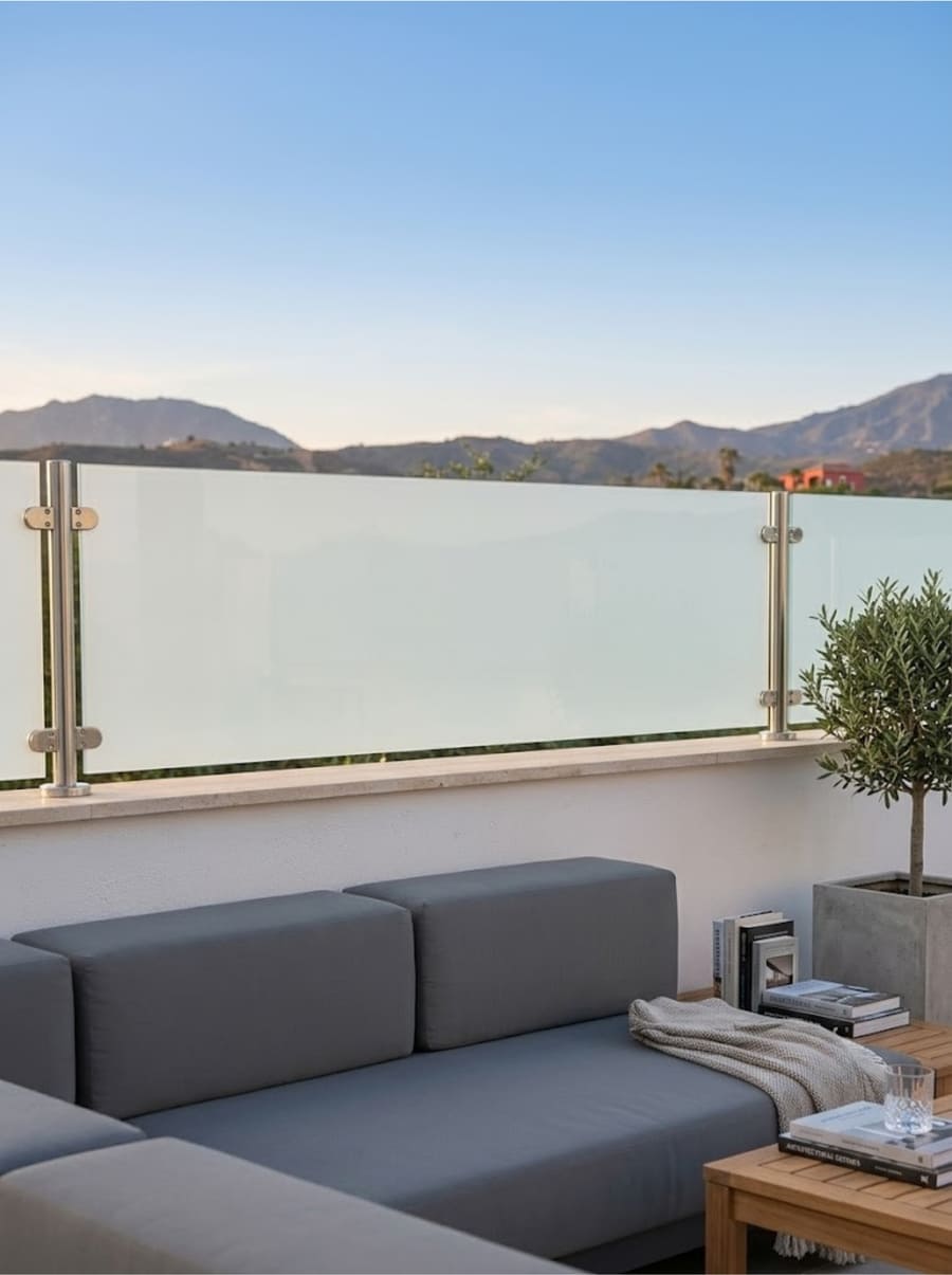 Nuestras barandillas pueden personalizarse en cuanto a tamaño, forma, color y acabado de los postes y ofrecemos una variedad de cristales de seguridad como cristales con protección solar, cristales mateados, texturados o tintados.