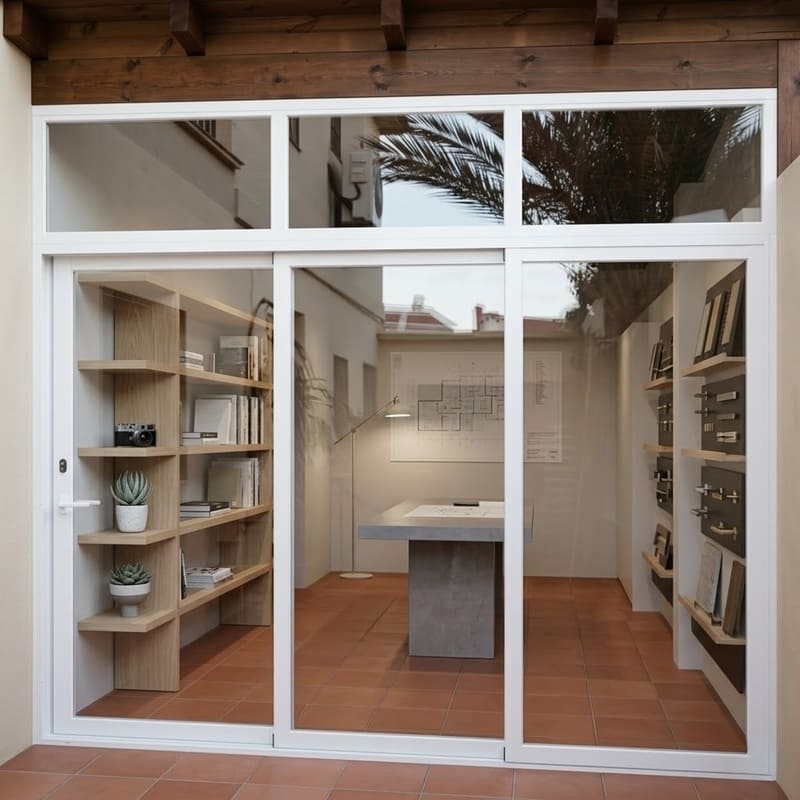 - Disponible en diferentes configuraciones de apertura según las necesidades del espacio: sistemas correderos, abatibles o pivotantes.