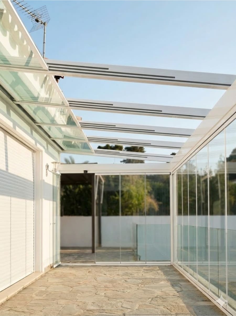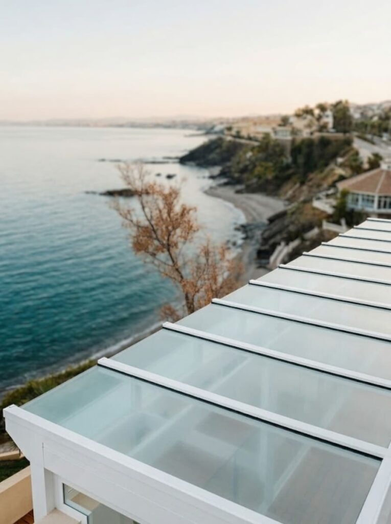 Las pérgolas bioclimáticas y los techos de cristal, tanto fijos como motorizados, son soluciones versátiles para disfrutar de terrazas y espacios exteriores durante todo el año. Se componen de estructuras de aluminio de alta calidad y sistemas de lamas orientables o paneles de vidrio que permiten regular la luz, la ventilación y la protección frente a la lluvia. Estos sistemas ofrecen un alto nivel de confort y adaptabilidad, permitiendo abrir o cerrar el espacio según las condiciones climáticas y las necesidades de cada momento.